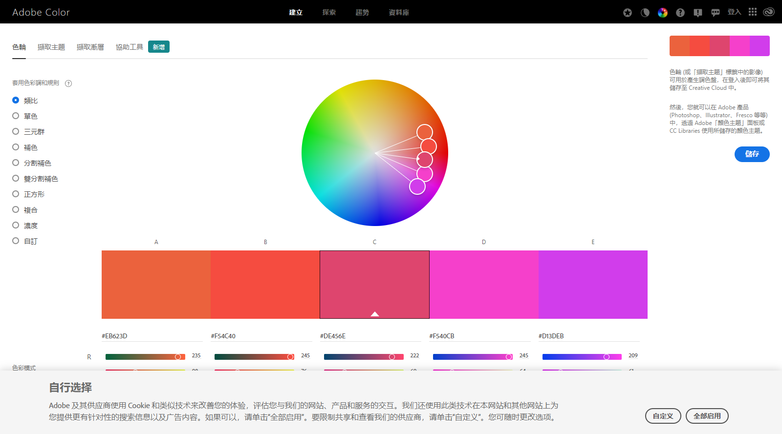 这个免费在线配色工具出自Adobe公司之手,是广大设计师配色的最佳之选。
